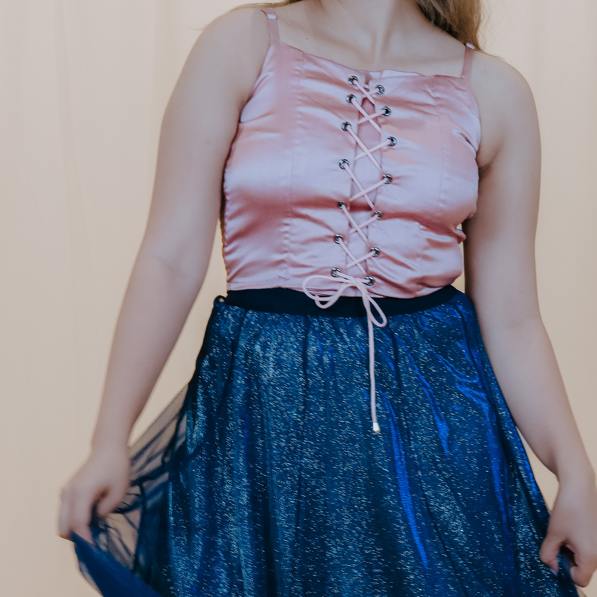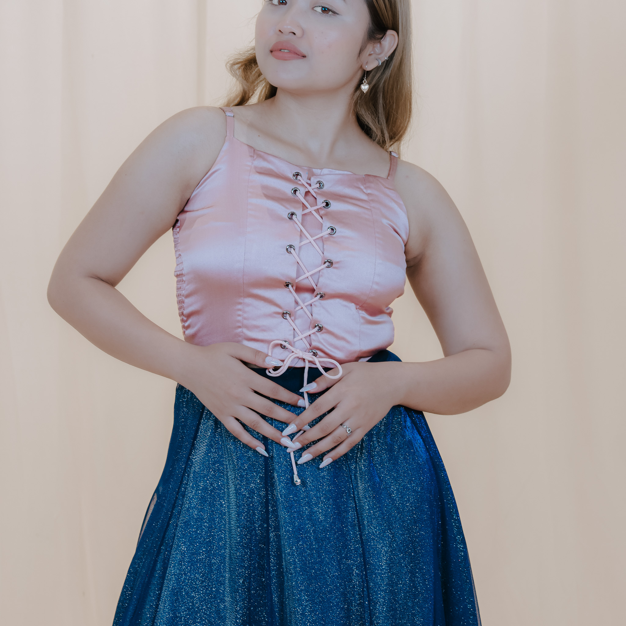 Elevate your wardrobe with our Satin Corset Top with Sparkling Mesh Skirt—perfect for day to night.