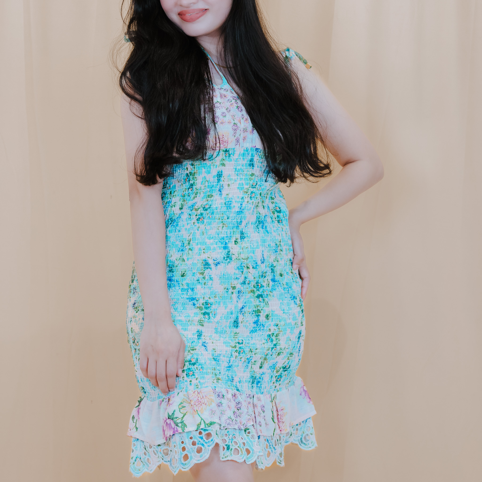 Elevate your wardrobe with our chic Aqua Bloom Sundress—perfect for day to night.