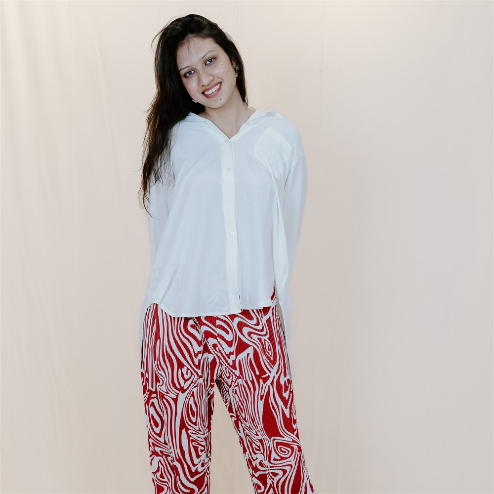 Upgrade your casual style with our White Shirt & Red Marble Palazzo Co-ord. Effortlessly chic, versatile for any occasion!
